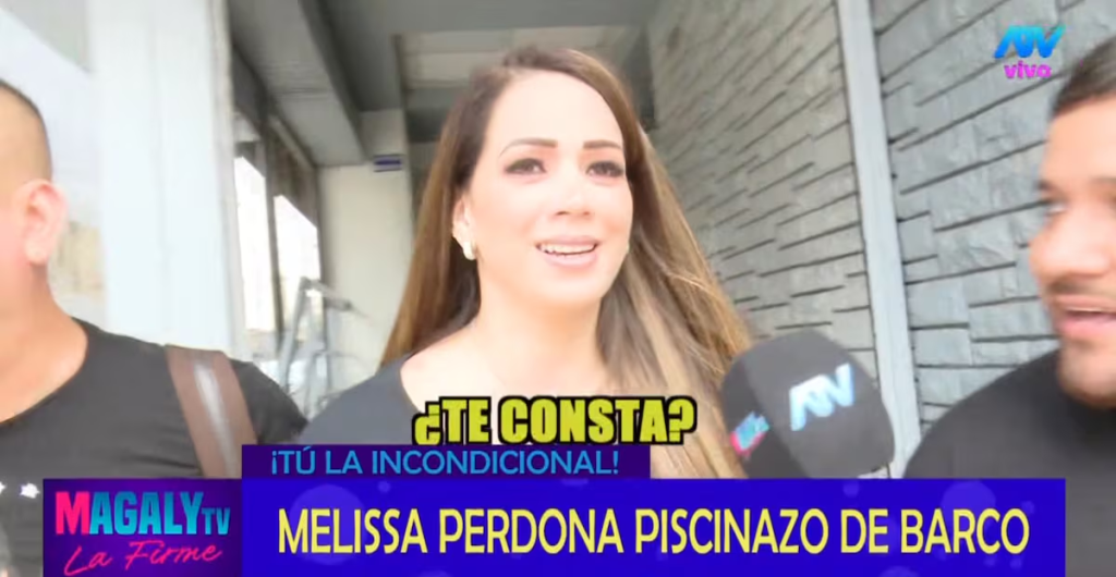 Melissa Klug fue interceptada por un reportero del programa de Magaly Medina, quien no dudó en preguntarle si ya había perdonado a Jesús Barco. La empresaria respondió que no, asegurando que el beso no significa una reconciliación total. Además, negó con firmeza ser la “nueva incondicional”, tal como insinuaron los reporteros.