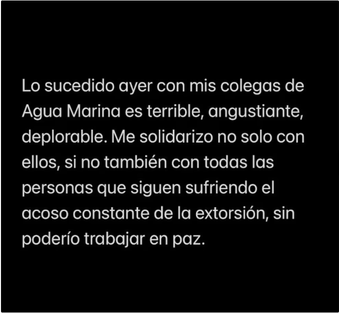 “Mi abrazo fraterno a mis colegas de Agua Marina”, expresó el cantautor, sumándose al pedido de justicia y paz.