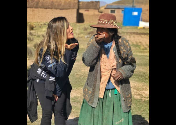 Korina Rivadeneria en su pasó por Puno, para acompañar a su esposo Mario Hart, decidió tomarse una fotografía con una señora del lugar pero causó gran controversia con este comentario.
