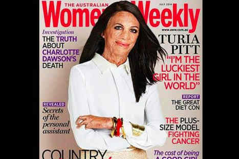 Todos nos hemos acostumbrado a que las revistas usualmente muestren a las estrellas, sin embargo la revista australiana Women’s Weekly, escogió para su portada de julio a Turia Pitt, una joven de 26 años que sufrió de quemaduras. ‘Estar en la portada de la revista es un gran honor. Me siento muy honrada. Para mí envía el mensaje de que la confianza en uno mismo equivale a belleza’ , expresó Turia .