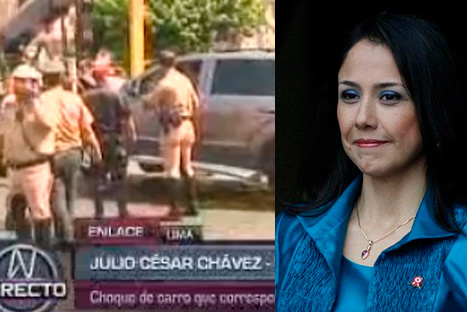 La Primera Dama Nadine Heredia tuvo que ser trasladada a una clínica local tras sufrir un accidente vehicular en el Centro de Lima.