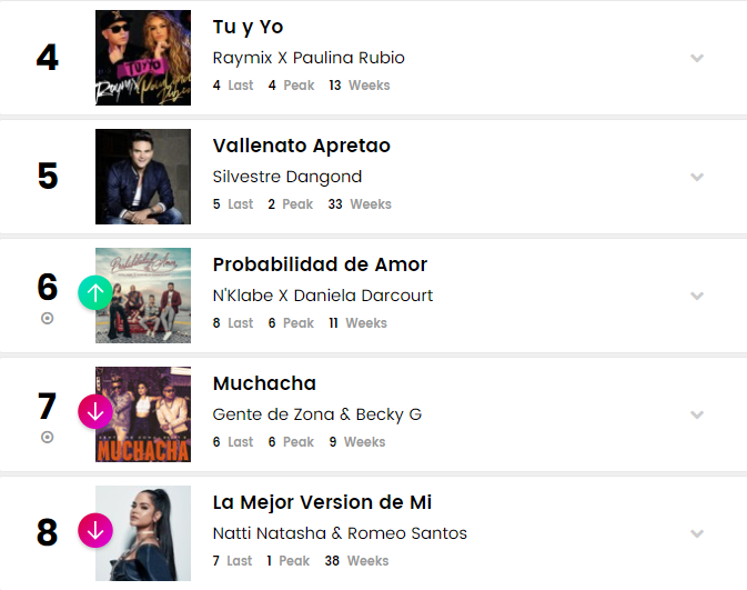 Tanto Daniela Darcourt como los chicos de N’Klabe deben sentir un orgullo enorme, pues mantenerse en el ránking Billboard no es tan sencillo como parece. Ante la enorme cantidad de canciones que suelen ingresar semanalmente, los temas suelen moverse mucho y no sostenerse sobre el tiempo. Probabilidad de amorha desafiado esta premisa.