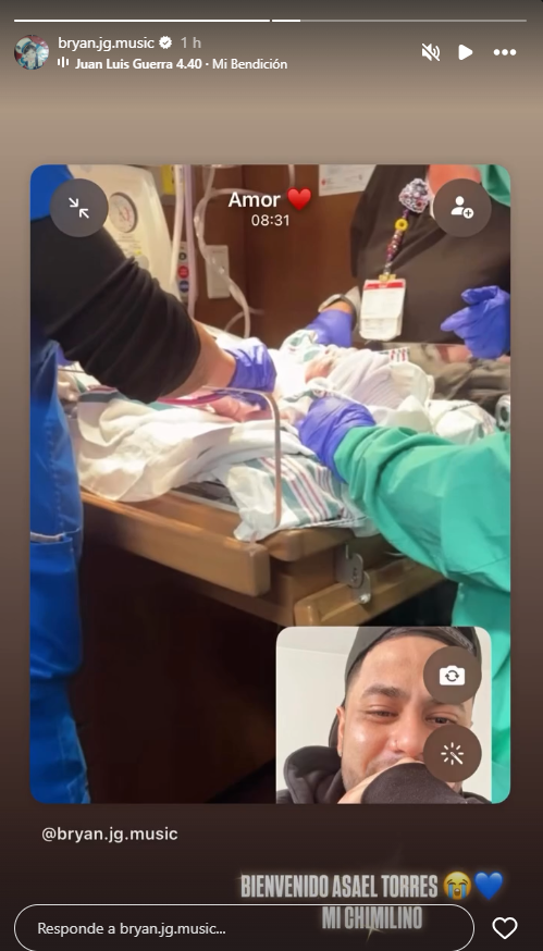 Aunque la noticia llenó de alegría a sus seguidores, lo que llamó la atención fue que Bryan Torres, su pareja, no pudo estar físicamente en el parto y solo acompañó el momento mediante una videollamada.
