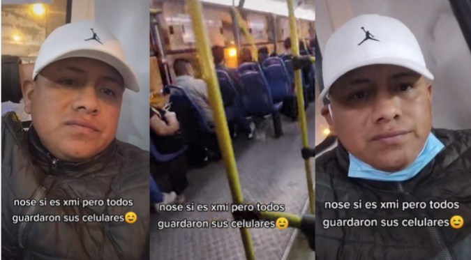 En esa línea, el hombre grabó el momento preciso en que subió al bus y observó una extraña conducta entre los pasajeros que se encontraban sentados.
