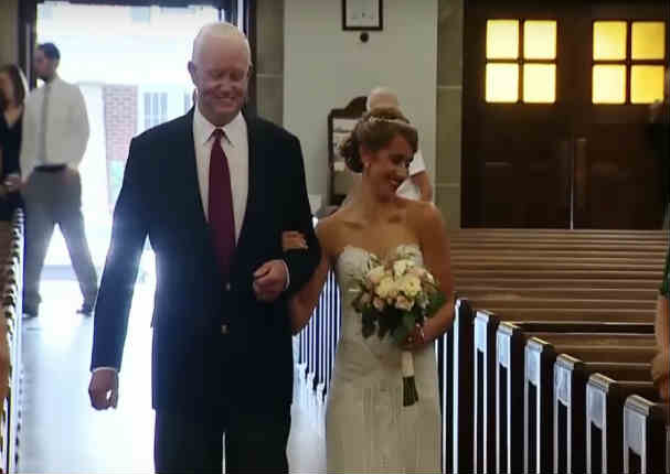 Jeni Stepien no tuvo mejor idea que presentarse al altar acompañada del hombre que lleva el corazón de su papá, quien fue asesinado hace 10 años.